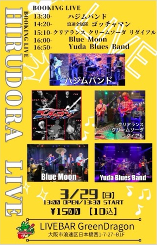 2026年3月29日(日) HIRUDORAブッキングライブ(グリーンドラゴン)